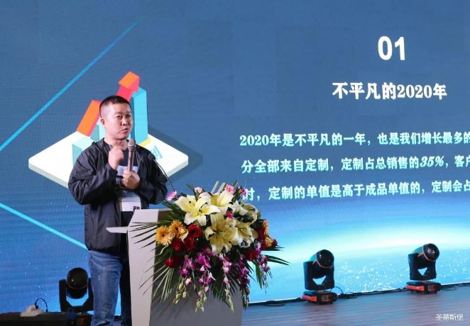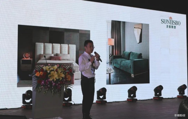 华灯璀璨的开场仪式,点燃了现场如火如荼的气氛。KU酷游集团营销总经理陈玉伟先生对晚会进行了主题发言,他对2020年的营销工作进行了总结,并着重从营销工作部署、重点项目开展、产品整合、拎包帮扶、渠道运营和移动+定制整装优势等方面对2021年的营销工作做了全面的统筹规划。同时,他还讲解了“美国梦凯莎床垫”新品的产品工艺、市场优势、产品定位,使经销商对我们的新产品拥有更深入的认识和了解。